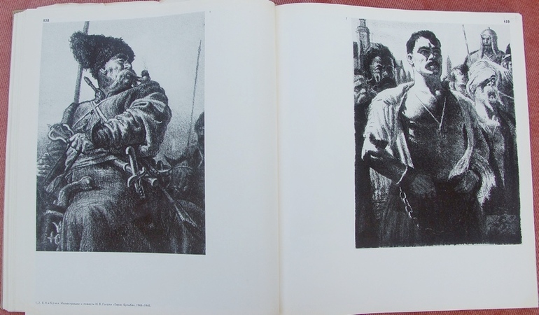 (здесь нарисованные в годы войны иллюстрации к «Тарасу Бульбе», ставшие классическими к этому произведению. Художник Е.Кибрик).