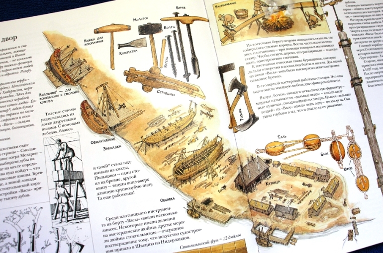 Сын, кстати, слушал, раскрыв рот - ему оказались очень интересны исторические детали, этапы рождения корабля и на второй части книги мы «сидим» уже не первый день - это настоящий музей эпохи и корабля. Это большой объем интереснейшей информации: рисунки, схемы, даже фотографии, подробные описания и факты, факты, факты.