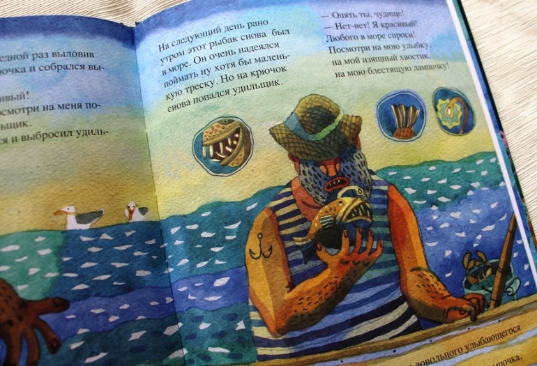 Рассказ очень интересный, затрагивает серьезные проблемы, такие как зависть и лесть, обида на оскорбления. Детский мозг моего ребенка очень удивило, что удильщика дразнят его внешностью. Он сказал, что удильщик зря выплыл из своих глубин к другим рыбам, что они злые. Довольно сложно мне оказалось объяснить ему, почему так происходит. Но зато мы поговорили, как же неприятно удильщику и что не следует вести себя так, как эти рыбы.