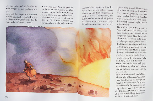 Иллюстрации заслуживают отдельной похвалы. Сначала я обрадовалась, что немецкий сборник вышел с иллюстрациями русской художницы, но задумалась, кто же это такая - Анастасия Архипова? Листала, смотрела картинки и восхищалась. А как дошла до "Снежной королевы", поняла, что знаю её.