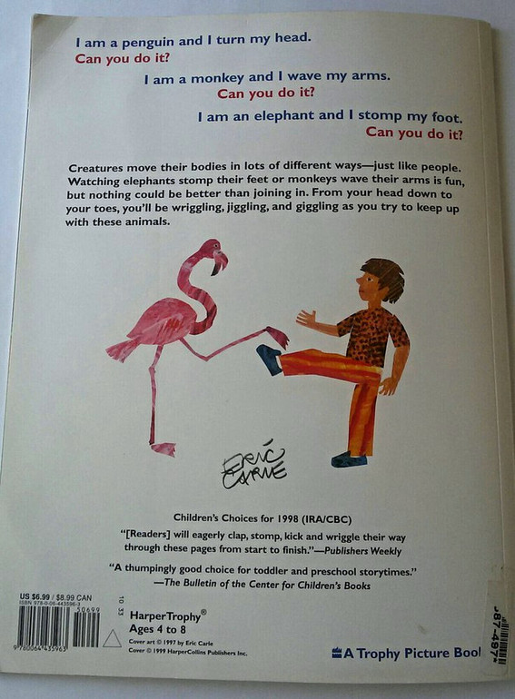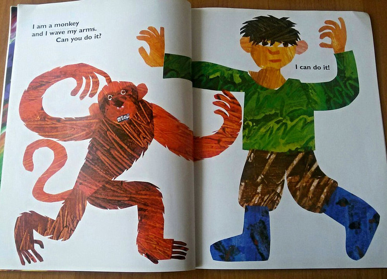 Кстати, "From Head to Toe" стала одной из первых книг, которые мы начали читать на английском. Перевод нам уже не требовался, ребенок был знаком с сюжетом, мы уточнили только отдельные слова. Мы играючи выучили животных и части тела, а по дому стало разноситься: