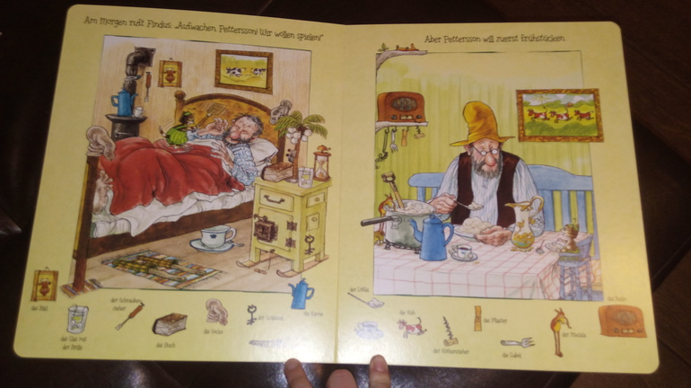 Сыночка уже поискал предметы, доволен. Мы читали 4 секрета Финдуса и уже пару недель в хитах Как Финдус потерялся.