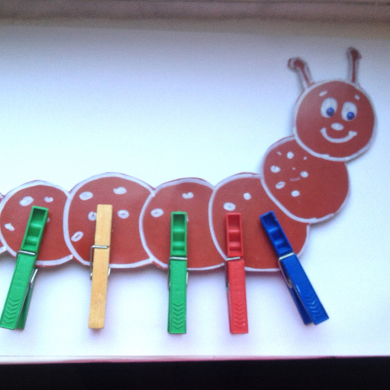Нашей гусенице понадобились ножки. Берем прищепки.