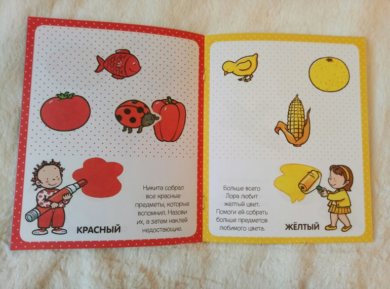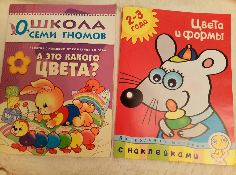 Цвета и формы издательства Махаон, автор любимая Земцова,люблю неослабевающей любовью) Она кандидат педагогических наук, руководитель Центра дошкольного развития детей, то есть человек с огромным опытом и практикой. Собираю все серии, что то еще от дочери осталось. С дочерью осваивали серию Умные книжки, у нас сохранились некоторые еще 2006, 2007 годов. И когда увидела, что есть ее же серия Дошкольная мозаика с наклейками,купила не глядя) В начале тоже представлены 4 основные цвета