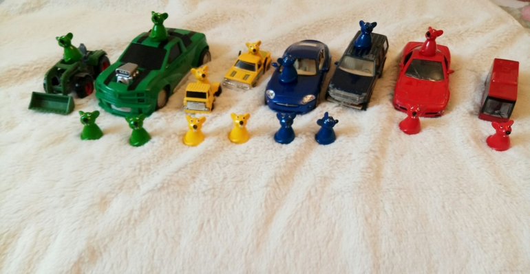 Машинки и мышки наша тема уже несколько дней) мышек стащили у старшей из настолки, под мою ответственность) и часами может запихивать их в машинки и гонять)