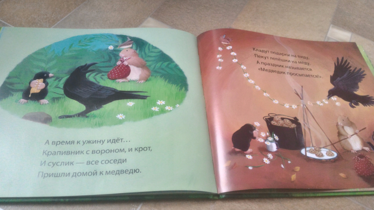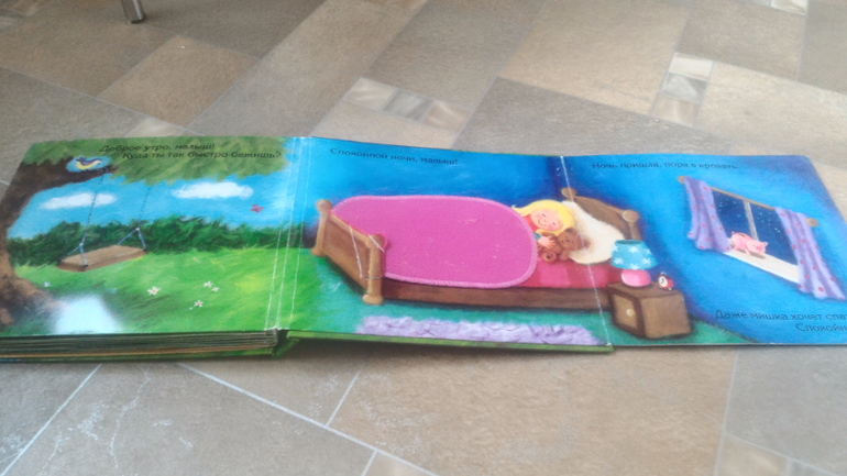 Текста на странице не много, малышам не надоедает слушать.