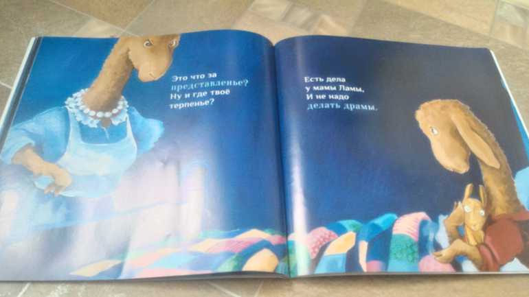 Читали "Ламу Красную Пижаму". Мне кажется, Мире здесь нравится певучесть текста, постоянное повторение этих слогов "Ла" и "Ма". Вообще, книжка не обязательная, на мой взгляд, просто милая история про ребенка, который не хочет засыпать без мамы. Рисунки хороши!