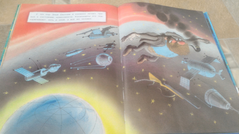 И последняя книга, на ней хочу остановится подробнее. Это В.Чижиков "Петя и Потап" от "Лабиринт-пресс" (умеют же они делать детские книги!!). Почему-то в сообществе она редко мелькает, как-то незаслуженно мало внимания ей уделяют, а зря - книга великолепная. В ней 3 сказки. Первая - это пересказ русской народной сказки "Вершки и корешки", вторая - это, собственно, "Петя и Потап", а третья - "Петя спасает Потапа". И всё это с великолепными иллюстрациями автора, на плотной мелованной бумаге формата больше А4. Ну первую сказку все знают, во второй рассказывается, как подружились мальчик Петя (внук мужика) и медвежонок Потап (внук старого медведя), а вот третья сказка довольно слабая, на мой взгляд. Читаем её только со старшим сынок, Мира книгу после "Пети и Потапа" захлопывает. Эту часть слушала только 1 раз и, видимо, не впечатлилась. В ней рассказывается о том, как медведя с медвежонком решил убить злой охотник, а Петя устроил ему западню и отправил - ТА-ДАМ - в космос. Вот это момент мне больше всего и не нравится - "С тех пор Злой Охотник в космосе летает, привык к состоянию невесомости. Космонавты его подкармливают: хоть и злой, а все-таки человек". Меня этот момент коробит, муж вообще сквозь зубы читает, Но сын слушает, его ничего не смущает)