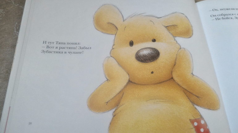 Начали читать "Тяпу-растяпу" от "Мелик-Пашаева". Чудесная, милая, очаровательная книжка, такой здесь обаятельный медвежонок, я млею от заплатки у него на боку) Книгу любят оба моих ребенка, а я читаю и надеюсь, что хотя бы на примере Тяпы научу их убирать за собой и не разводить бардак