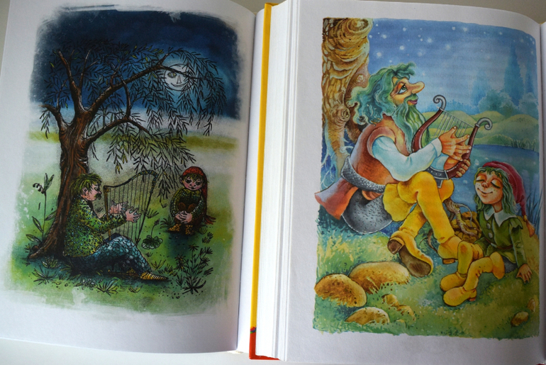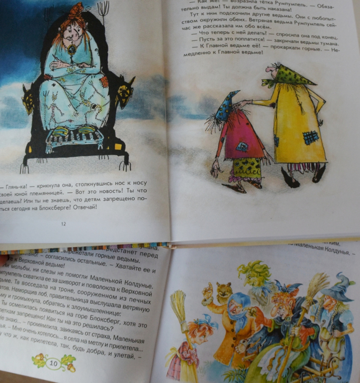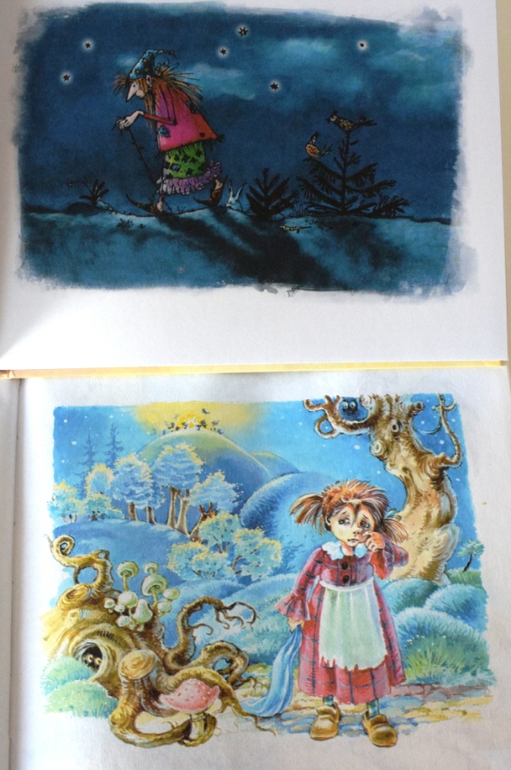 Когда Эксмо издали книгу в переводе Коринца (наша была в переводе Ивановой), приглянулись рисунки, наиболее подходящие сказкам, и качество книги на порядок выше. Баба-Яга теперь уже не Колдунья, как была у нас. И не Ведьма, как еще можно встретить в других изданиях.