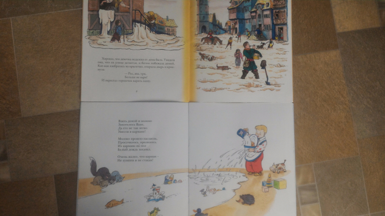 Правда, переливающийся обрез и золотые буковки в названии, на мой взгляд, излишни. А вот мелованная бумага мне нравится, очень идет этим иллюстрациям