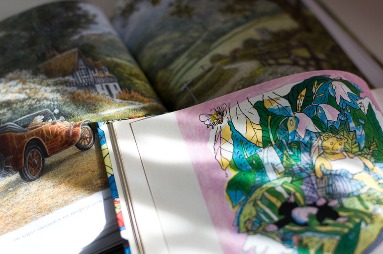 И тут на тебе, как гром среди ясного неба - "Ветер в ивах" с иллюстрациями Инги Мур! Возможно пропустить? Нет, точно нет. Ну и что что перевод сокращен (об этом подробно поговорим еще), но картинки какие! Это же настоящая Англия! Та самая. Ветреная...