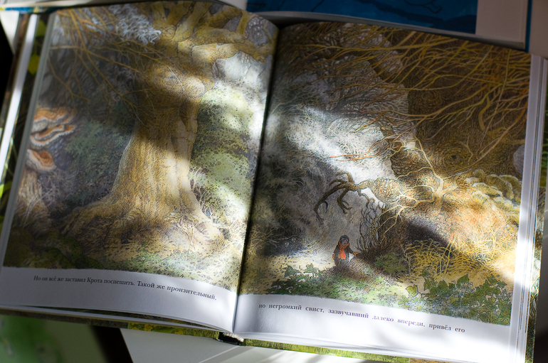 На счет текста хочется поговорить отдельно. Перевод Токмаковой - это единственное, что я читала. Сравнить не с чем. Разве что-то прочла несколько разворотов "шедевра" от Нигмы. Но выражения "стояло утро" и "крапивник просвистал" мне как-то режут глаз, мягко говоря.