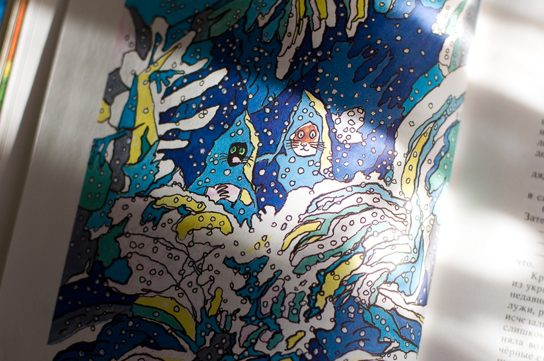 Несмотря ни на что, я ее купила. И не жалею и претензий к ней много. Уж не знаю почему издательство пошло на такое сокращение, но книга много потеряла. Так как в обоих книгах переводы одинаковые (Токмаковой), я читала их параллельно, приправляя чудный мир картинок Мур полным переводом.