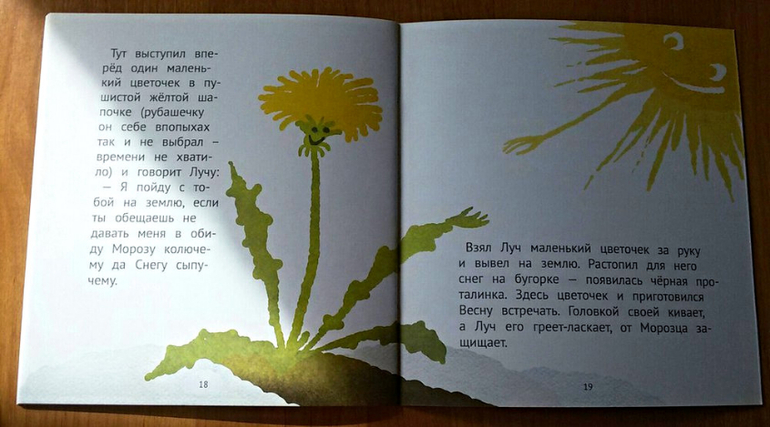 А тут и первые вестники весны подоспели, но рано еще цветам выходить, морозно. Наконец-то, и сам солнечный лучик к ним заглянул. Взял маленький цветочек в пушистой желтой шапочке и вывел его на землю. Увидела его Весна, обрадовалась. Поспешила мороз прогонять, чтобы остальные цветы на землю высыпали - мир собой украшать.