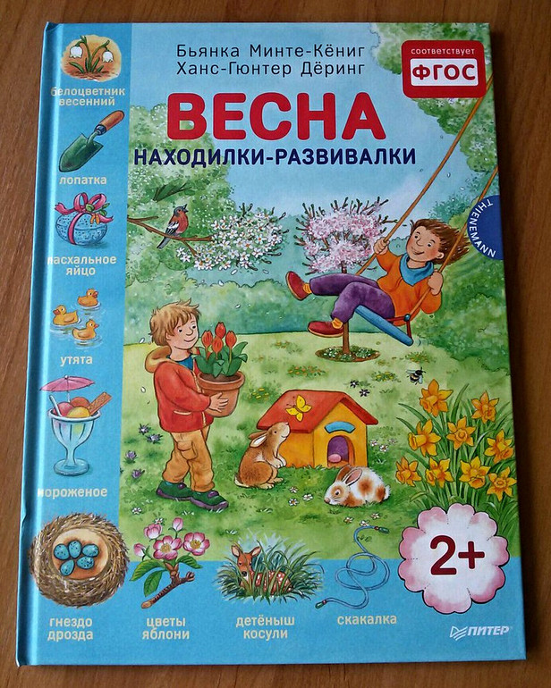 Это наша вторая книга из серии "Находилки-развивалки". Детям она приглянулась больше зимней, хотя и та нам понравилась. Переводная книга про немецких ребят Юлию и Лукаса, которые радуются приходу весны. Они очень любознательные и вместе с ними малыш узнает много интересного. Какие цветы весной распускаются первыми. Что за весенний праздник - Пасха. Когда появляются утята и прилетают первые ласточки. И еще много всего познавательного про лес, птиц, зверей и насекомых.