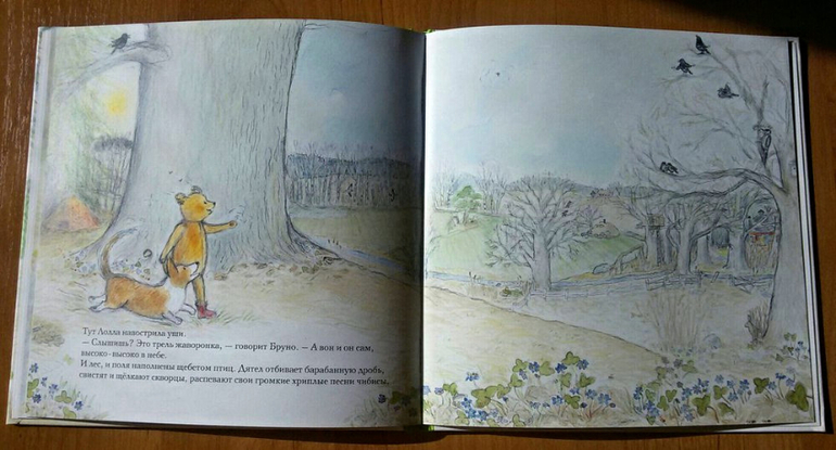 Кстати, форзацы книги оформлены в виде зарисовок из дневника мишки, в котором он собрал любопытные и познавательные факты о птицах, цветах, своих посадках и весне. Малышу будет интересно узнать о том, как прорастает в земле растение, происходит опыление цветов, как птицы вьют гнезда и ухаживают за птенцами.