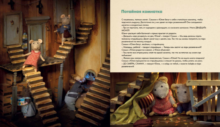 Карина Схапман придумала и сделала Мышкин дом, чтобы рассказать самые разные истории, которые приключились с мышатами Самми и Юлией. Мышкин дом построен из простых материалов - картонных коробок, папье-маше, обрезков ткани. Чего только не найдёшь в этом домике! Одних только комнат - 100 штук! А ещё коридорчики, прихожая, балконы... Здесь всегда происходит что-нибудь интересное. На этот раз Самми и Юлия отправились в настоящий парк развлечений!