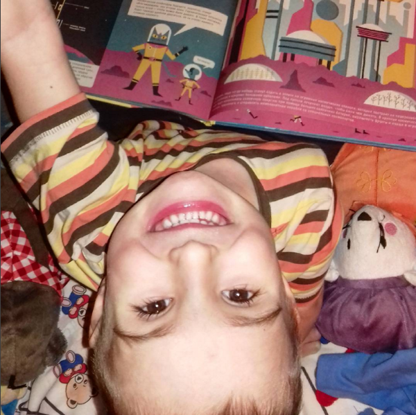 Застала за чтением, конечно он ещё не читает, но пролистывая странички проговаривает информацию, отмечу ,что уже многое знает :)