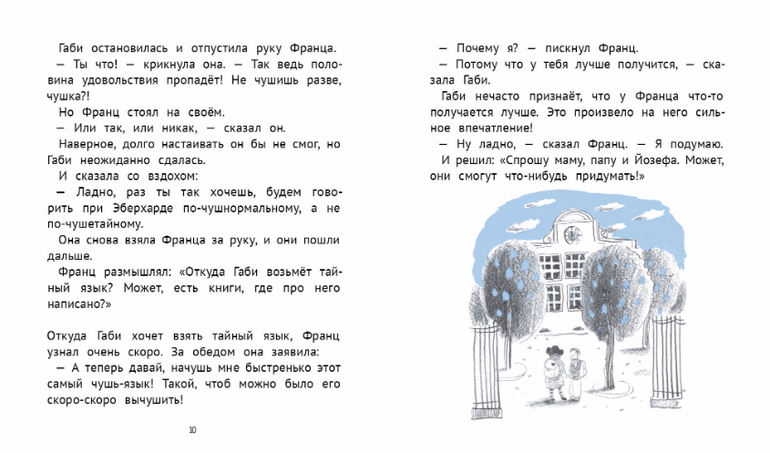 В этой книге австрийского классика детской литературы Кристине Нёстлингер вас ждёт свежая порция рассказов про Франца. Герою восемь лет, у него есть школьный друг Эберхард и "послешкольная" подруга Габи. С первым Францу интересно, а вторую он по-настоящему любит. Надо признать, Габи ужасно непостоянна: может обидеться или пригрозить дружить только с Сандрой - зато может бескорыстно помочь или придумать увлекательнейшее совместное дело. Вот и на этот раз у неё родилась чудесная идея - создать тайный язык, понимать который будут только она и Франц! Как вы думаете, кому в итоге пришлось изобретать новый язык? Конечно, Францу! Он и рад: Габи ведь сказала, что у него это получится лучше всего! Всё и вправду получилось на ура: мама посвятила Франца в тайный "у-язык" - на нём она когда-то говорила с подругой, связь с которой потом потеряла. Владеть " у-языком" - одно удовольствие: меняй все подряд гласные на "у", и нукту тубу ну пуймут! Габи в восторге - но лишь до тех пор, пока Франц не раскрыл " у-секрет" Эберхарду, за что она назвала друга "чушь перемётная" и обвинила в предательстве. Прилипло же к ней глупое словечко "чушь", ни фразы без него не произносит! Как со всей этой чушью и со всем этим предательством теперь разобраться? "Рассказы про Франца" - это идеальное чтение для тех, кто только начинает читать. Всего в серии девятнадцать книг, "Рассказы про Франца и чушную чушь" - пятнадцатая в коллекции. "Рассказы про Франца" стали лучшей книгой 2013 года по версии сайта "Папмамбук". Кристине Нёстлингер - австрийская детская писательница, автор более ста книг для детей и подростков. Её творчество отмечено десятками наград, среди которых премии