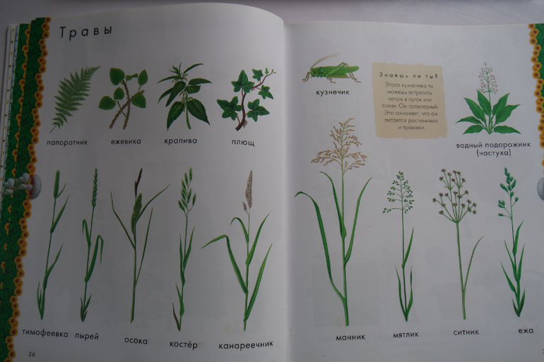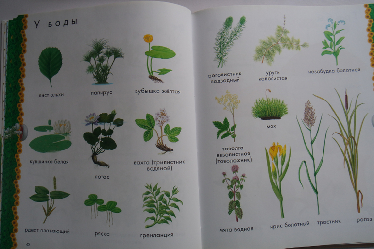 В книге много интересного: пальмы, хвойные деревья, растения пустыни, грибы....