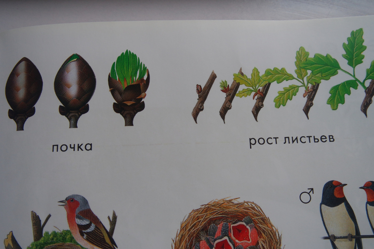В книге более 600 иллюстраций объектов природы и очень мало текста, только пояснения картинок и небольшие задания или интересные факты. Идеальный формат для маленьких слушателей и исследователей.