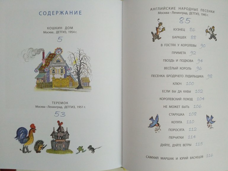 Спасибо большое , что показали! А вот еще одн акнига вышла у АСТ с Васнецовым: там не только Кошкин дом, Теремок, но и другие сказки, иллюстрированные Васнецвым (не только Маршак). Так вот мне интересно, в полном ли объеме в этом сборнике даются Кошкин дом и Теремок по сравнению с чисто Маршаковским сборником.