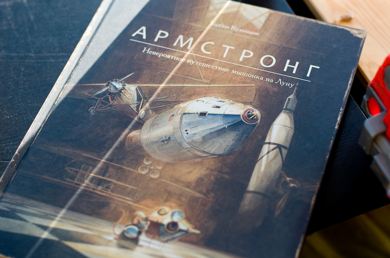 Армстронг. Да, я знаю, что совсем недавно о нем писала, но не удержусь. Она зацепила ребенка больше, чем "Линдберг". Так что если вы переживаете, что не успели купить летающего мышонка, то просто покупайте эту, вторую. По сюжету они не связаны, можно читать и отдельно.