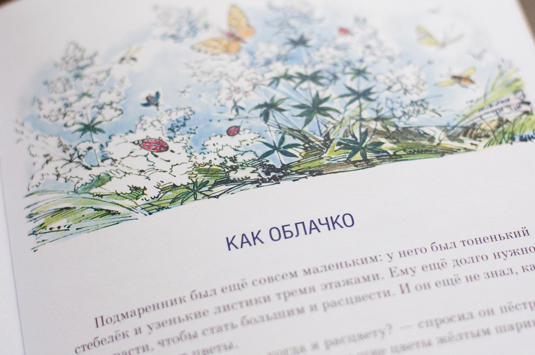А мне все-таки хочется чуть задержаться и еще раз вспомнить и про гусиный лук, что вырос вопреки злому кусту, и маленького жучка, что ночевал в одуванчике, и хвастливого подмаренника, которому так хотелось быть большим цветком... Много всего, книга многогранна, как лето.