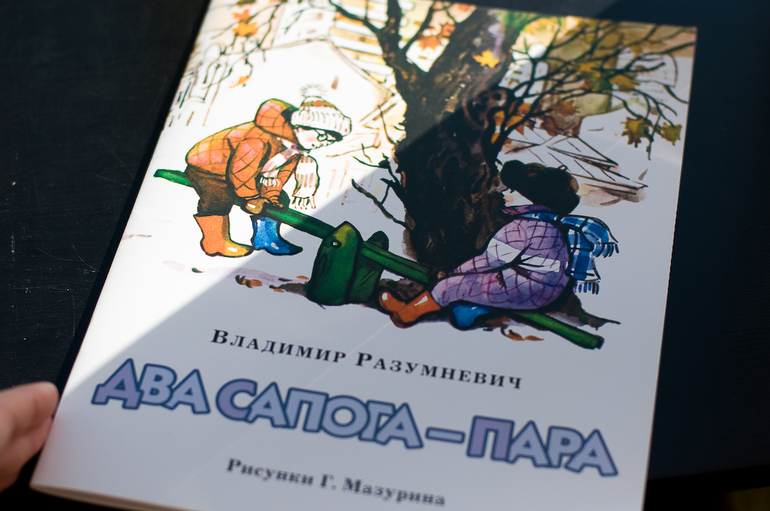 - А эта про двух мальчиков, они хотели быть одинаковыми, - протягивает он мне книгу Разумневич "Два сапога - пара".