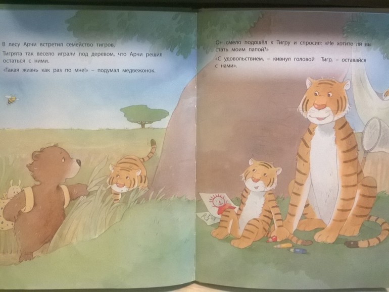 Добрая история про Медвежонка Арчи, который не хотел искать мед, и поэтому решил пойти и найти себе нового папу (Тигр, Гусь, Змей, Аист, Кит). В итоге он возвращается домой, потому что понял, что его папа - самый лучший!