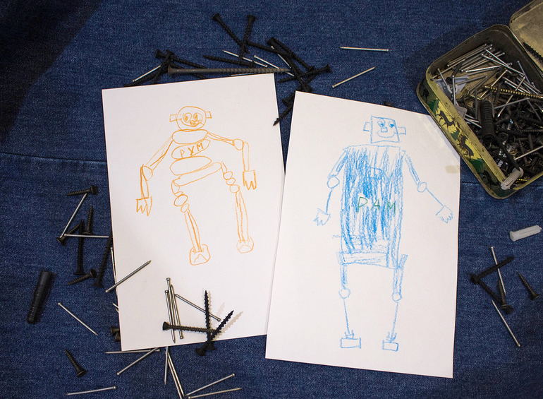 Ну и еще скажу, что очень люблю, когда книги побуждают на творчество. Варя уже из Большой книги машин нарисовала 2 корабля, автобус и легковой автомобиль, и вот сегодня осилила роботов, аж с третьей попытки. То не получалось, то на листок не влезли, но в итоге осилила и очень горда собой, а я ей, не буду скрывать)