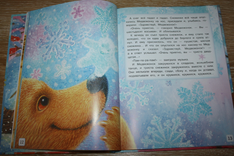 Мне очень понравились иллюстрации Павловой. Может именно они повлияли на восприятие книги. Когда книга вышла, помню, многие восторгались иллюстрациями, какие глаза у ёжика, какая снежинка на носу, звери как живые смотрят на нас со страниц книги! Я тогда посмотрела, не оценила, но книгу купила (не зря ж так все нахваливают). И вот только теперь, спустя больше года после покупки я сама в восторге. Бывает же такое!