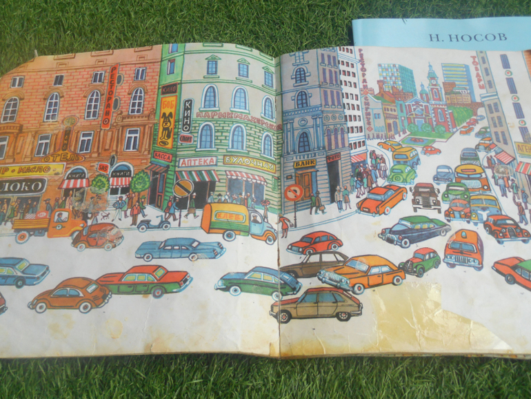 Примерно в середине месяца мы бросили Чуковского и перешли на "Мальчика и сто автомобилей". Эту книгу, в весьма потрепанном виде, нам подарила местная библиотека, ее просто списали за ненадобностью. Но в нашем доме книга пришлась по душе слушателю и много много раз перечитывалась. Незамысловатая история в истории про мальчика Матиаса, который очень любил машины и просил папу рассказать ему историю про автомобили. И вот, однажды вечером, папа решился и рассказал такую историю.