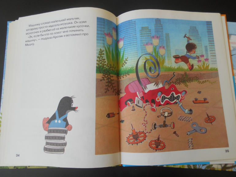 Ну а после Матиаса мы распробовали Кротика, у нас отдельными изданиями. Причем, читали только про ракету и автомобильчик. Кротик и снеговик открыли и сразу закрыли, не интересно. Если с автомобильчиком все понятно, то с ракетой не все так просто. Ракета у нас всегда читается первой, а вдогонку автомобильчик. Давиду нравятся в ракете морские обитатели: крабик, рыбки, морские коньки и ракушки. Тут настоящее приключение, опасность, спасение и дружба. Сюжет замечательный, а исполнение сами знаете, что прекрасное.