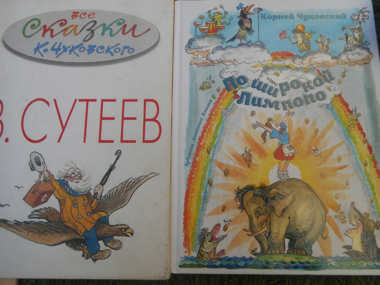Первую половину месяца мы читали только Чуковского. Сначала это был сборник "По широкой Лимпопо", но мне совсем не нравятся иллюстрации Елисеева (подробнее писала тут), хотя сборник и очень полный, и я решила откопать наш первый, с Сутеевым. Но в ходу были оба, более всего, конечно, читался "Мойдодыр", "Айболит" и "Телефон". Когда силы мои были на исходе, попробовала предложить замену и включить винил с записью "Айболита", но не пошло совсем. Надо сказать, что аудио сказки Давид слушать пока не готов, только классическую музыку.