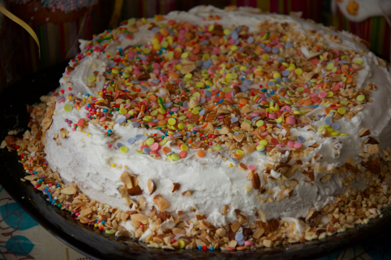 Пусть сегодня будет лимонный кекс) Как Вам? Это Рося в щедрости высыпал всю посыпку)))) А с боков миндальная крошка))))
