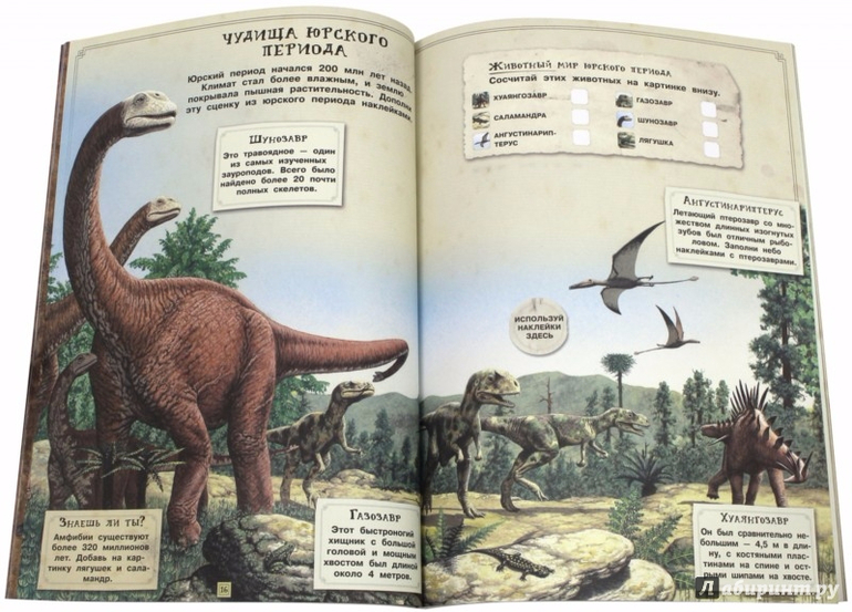 Интересные факты, множество рисунков, задания и наклейки помогут тебе лучше представить этих замечательных существ.