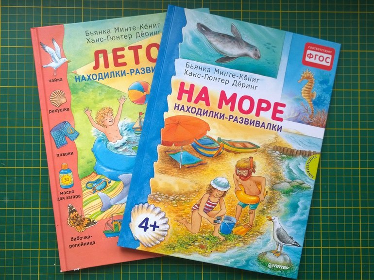 Так же по летней тематике купила пару новеньких искалочек. Такие покупаю впервые, формат большой, но за счет бумажных страниц они очень легкие. Да, страницы бумажные и для нас это минус, так как листаем часто. Лето 2+, а море 4+ . Обе книжки возьму с собой на отдых.