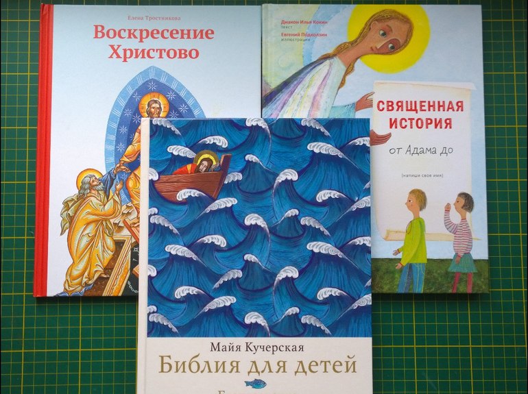 Несколько духовных книг, покупаю понемногу на вырост, но Библию Кучерской уже читаем сейчас, там короткие и понятные рассказы.