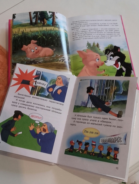 Сказки Циферова.....ну что сказать...не знаю, я их не поняла...странный юмор в некоторых, нежно любим Про слоненка, который не знал кем быть, а этот сборник так и не дочитали, прочти треть и сын не просит, говорит потом, так и отдали в библиотеку обратно. Иллюстрации конечно отличные, а текст на любителя.