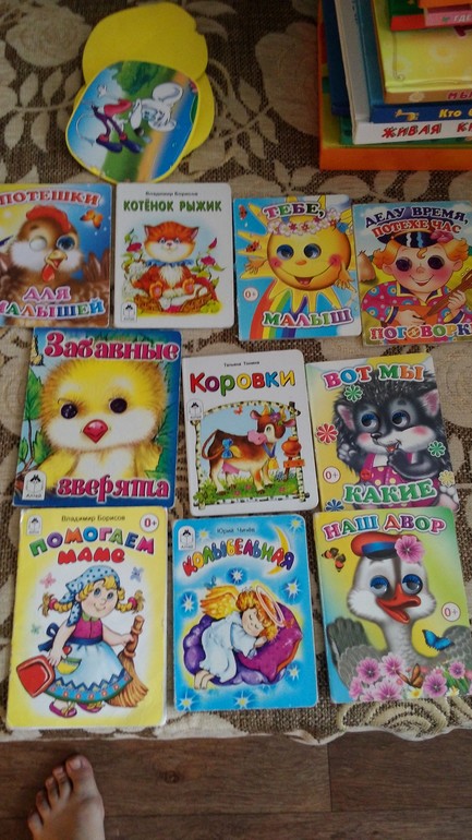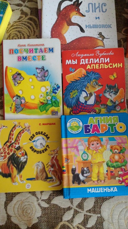 Интересно как, именно такие книжки-кубики до года были в любимчиках у дочки, теперь младший сын их смотрит с удовольствием. А вот Мои любимые животные дочка не особо любила, и младший тоже. От Розового жирафа старшие любили, малышу не доставала. Дочка увидела фотографию, закричала, что у нас такие есть, и эта, и эта, все есть. Пошла смотреть, что Вы со старшей читали, интересно.