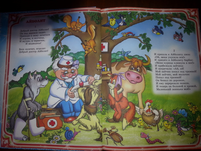Сборников до этого у нас вообще не было. Это первый. Некоторые произведения мы до этого читали. Прямо на площадке, побросав все прогулочные дел,а дочка выслушала всего Айболита. Это меня порадовало.