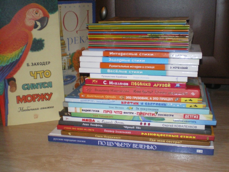 На фото бОльшая часть стопки - ребенок великодушно выслушивал-высматривал. Некоторые из них после прочтения перелистывал назад "ЕЩЁ". Сердце материнское таяло - вам ли мне говорить? Были и книжки-картинки, не связанные с ГВ, которые видимо удивляли моего ребенка, заставлял перечитывать, объяснять по несколько раз подряд, потом сам - где то радостно, где то тревожно всматривался, объяснял по своему.