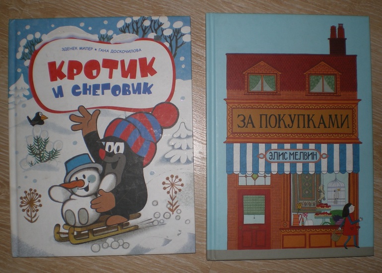 После "Это грузовик, а это прицеп" у нас пошли самоВыдуманные сказки. Это уже другая история. С мозолями на моем языке и закипанием в мозгу((( Сказки в дневнике.6. "Кротик" читался много, но недолго, попробую из библиотеки другие позже, не уверена что нужен нам. "За покупками" (также как и "Что снится моржу" Заходера) - нравится из-за разворотов. Не хит, может позже интереснее будет.