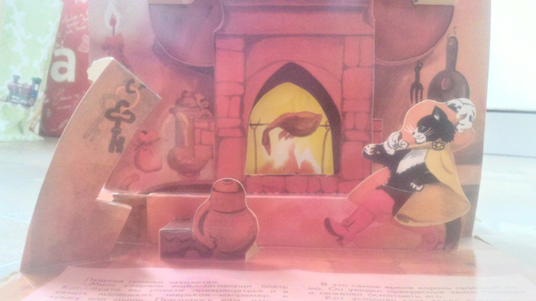 Самая моя обожаемая детская книжка - вот это "Кот в сапогах". Такая здесь красивая принцесса, настоящая француженка. В детстве всё пыталась её нарисовать, придумывала ей новые платья. А еще здесь на каждом развороте какие-то движушиеся элементы: то кот идёт, то дверь замка поднимается, а людоед становится львом.