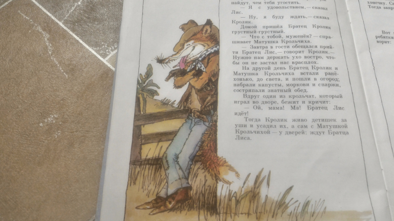 Дж.Харрис "Братец Лис и Братец Кролик". Я помню, как мне ее читал дедушка, укладывая спать. Теперь другого Кролика и Лиса для меня не существует, только вот эти, нарисованные Казбековым.