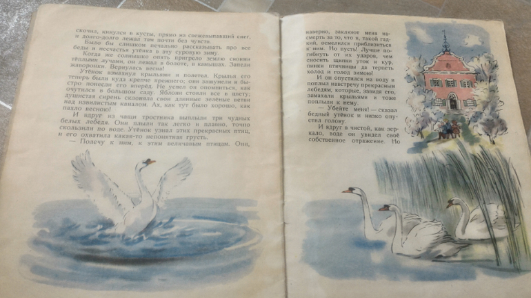 "Гадкий утенок" у меня был с рисунками Костровой. На фото книги нет, так как обложка не уцелела. Даже интересно, как она выглядела. Иллюстрации очень нежные, но их мало для такой сказки, на мой взгляд.