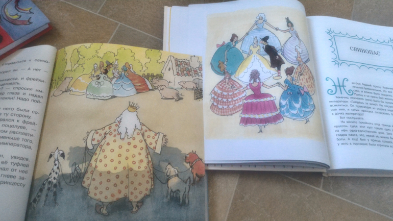 У нас есть книга от Астрели "Жил бедный принц", тоже с Кокориным. Там всего 3 сказки. Вот, например, "Свинопас" в обеих книгах:от Астрели больше иллюстраций, есть на целый разворот, а те,что в Энасе повторяются, изменены. Но...есть и обрезанный рисунок.