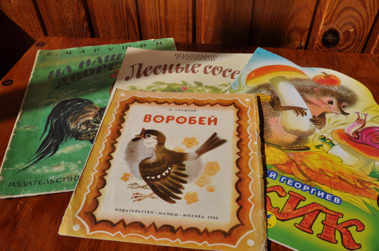Любимая тема - животные. Степанов - короткие стишки, Сладков - малюсенькая сказочка о воробье, которого накормил пастух, птичница и доярочка (книжка-раскладушка, всего 3 странички).
